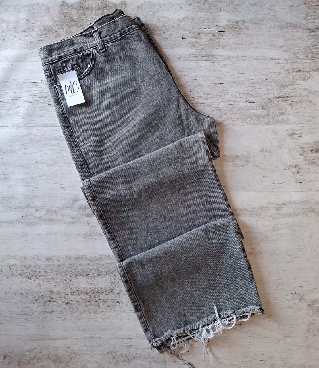 Jean wide leg rigido deflecado en la botamanga